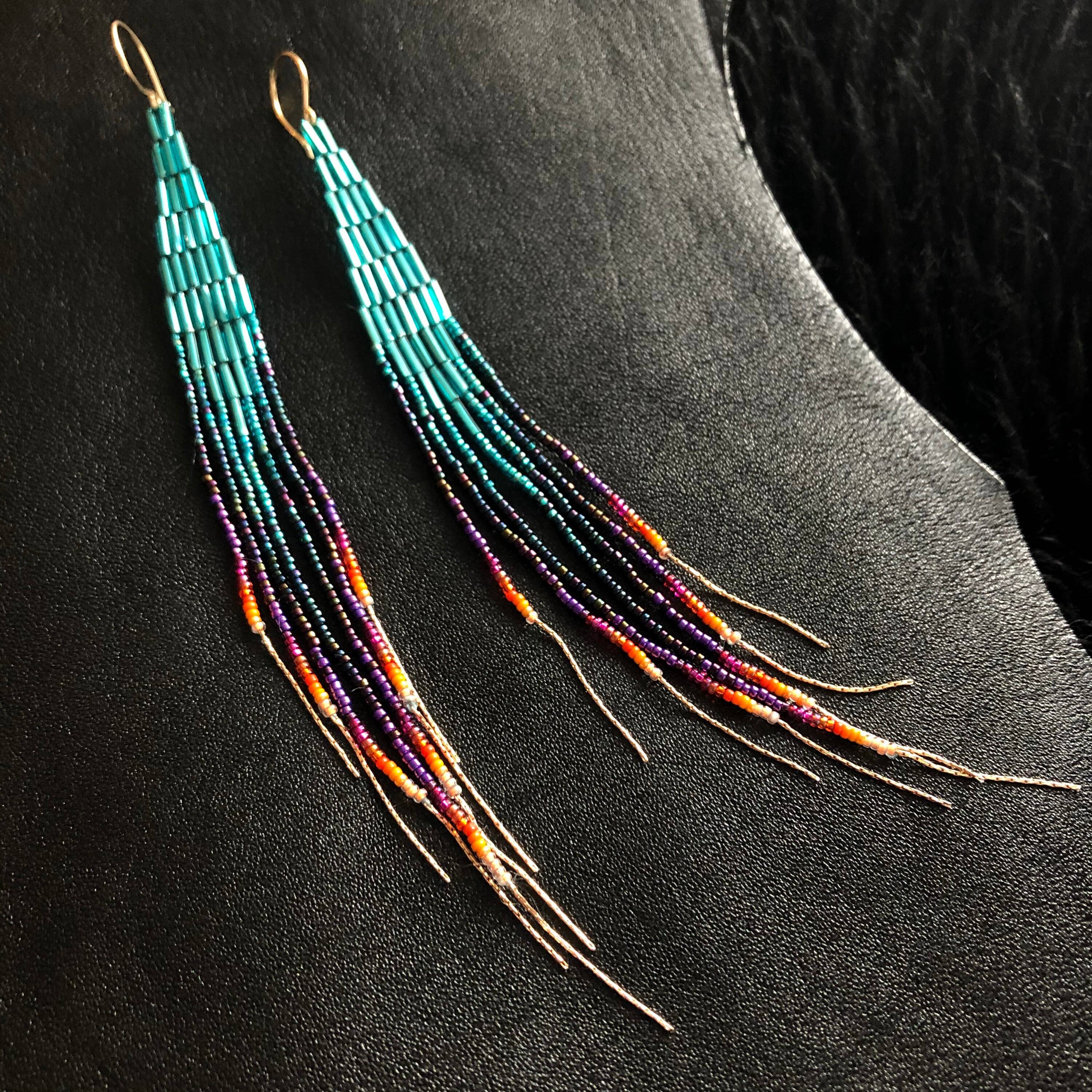 Boho Beaded Fringe Earrings, Handwoven Seed Bead Earrings