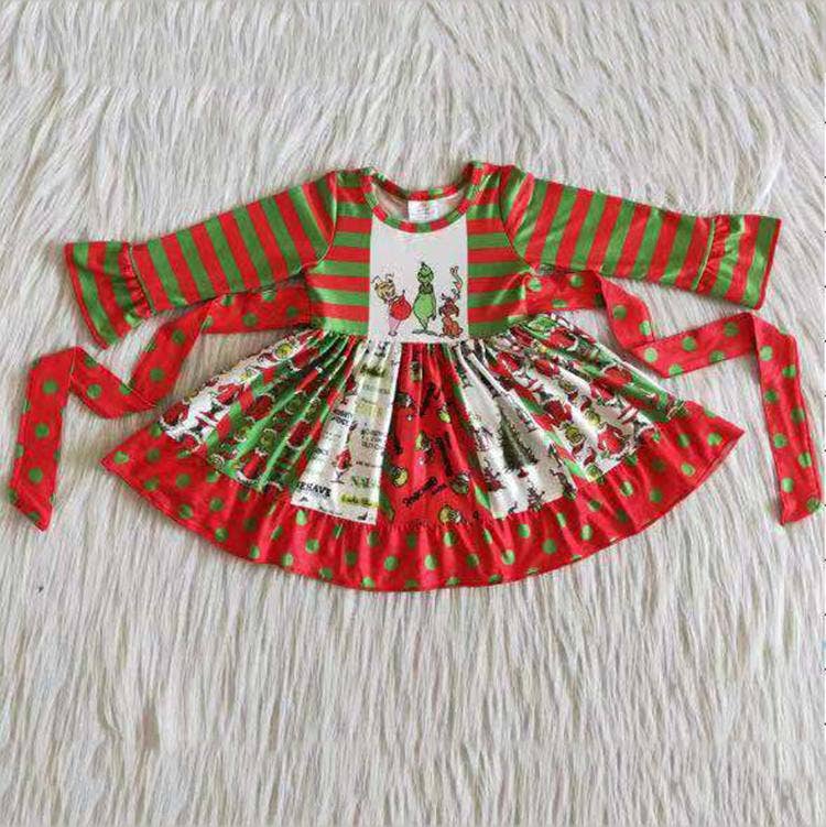Wholesale Green faux fur suspender skirt match long sleeve shirt girl Christmas outfits