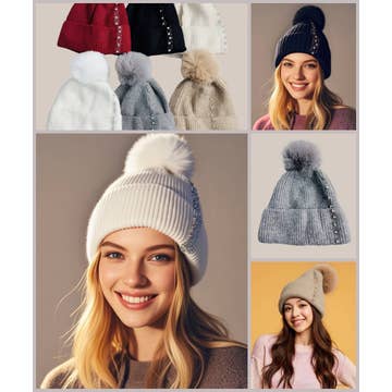 Bedazzled Metallic Sequins Embellished Pom Pom Decor Fleece Lined Cuffed Knitted Trooper Beanie -Dimensions: 7.25" * 6" * 2" -Assorted Color (4-Black, 2-Navy Blue, 2-Off-White, 2-Gray, 1-Beige, 1-Rose Pink) -100% Acrylic -CA Prop 65 Advisory