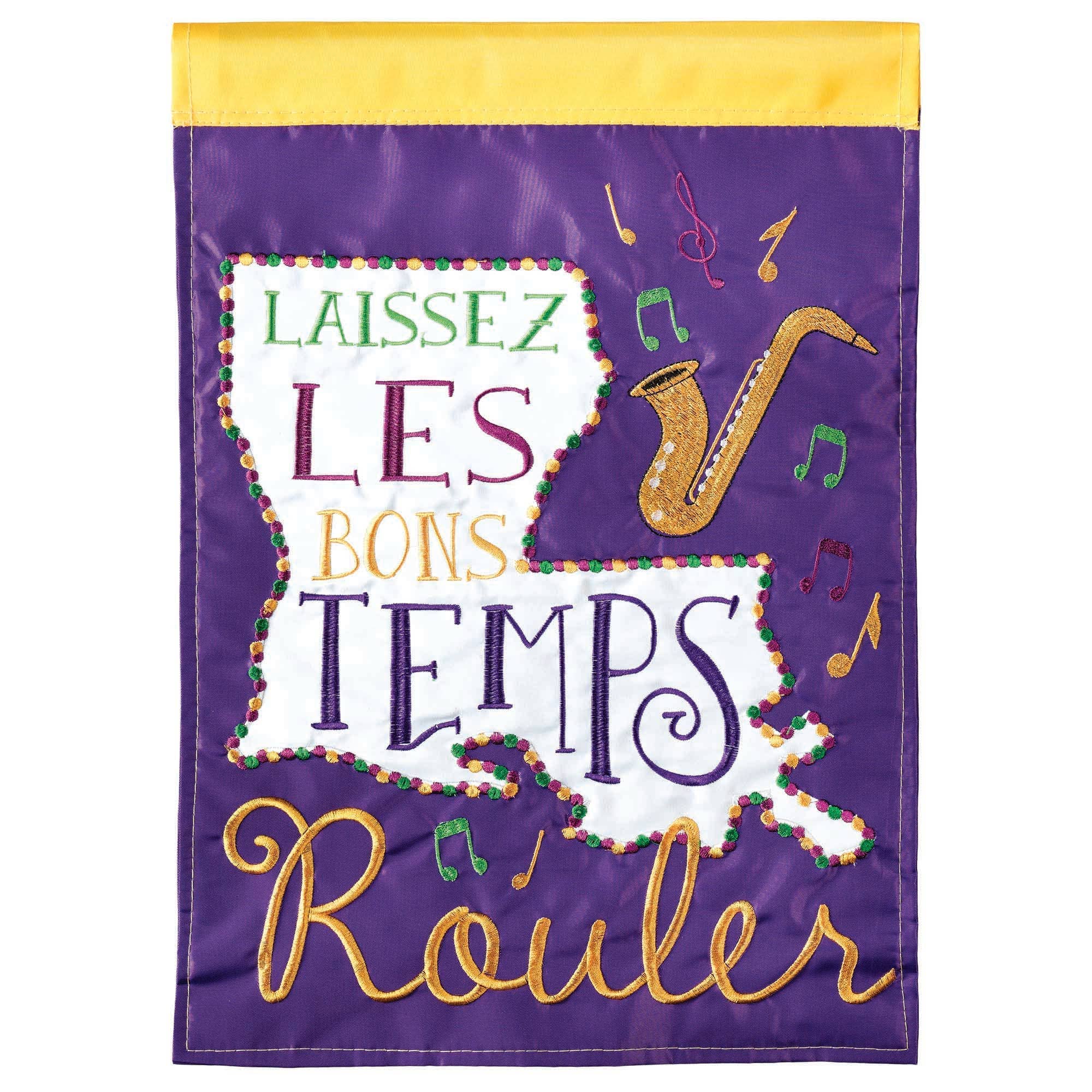 Large size Double Applique flag is 29 x 42 inches. The design is a combination of fabric appliques and exquisitely detailed embroidery. And It is on both front and back sides of this 300 denier polyester double thickness flag. These flags are heavier than most others on the market and will hold up longer. Double applique flag fabrics are either satin-smooth or a burlap texture; sometimes a combination of both. Flag will retain its color and beauty for years if displayed in shade or semi-shade, and is rainproof. Flagpole not included.