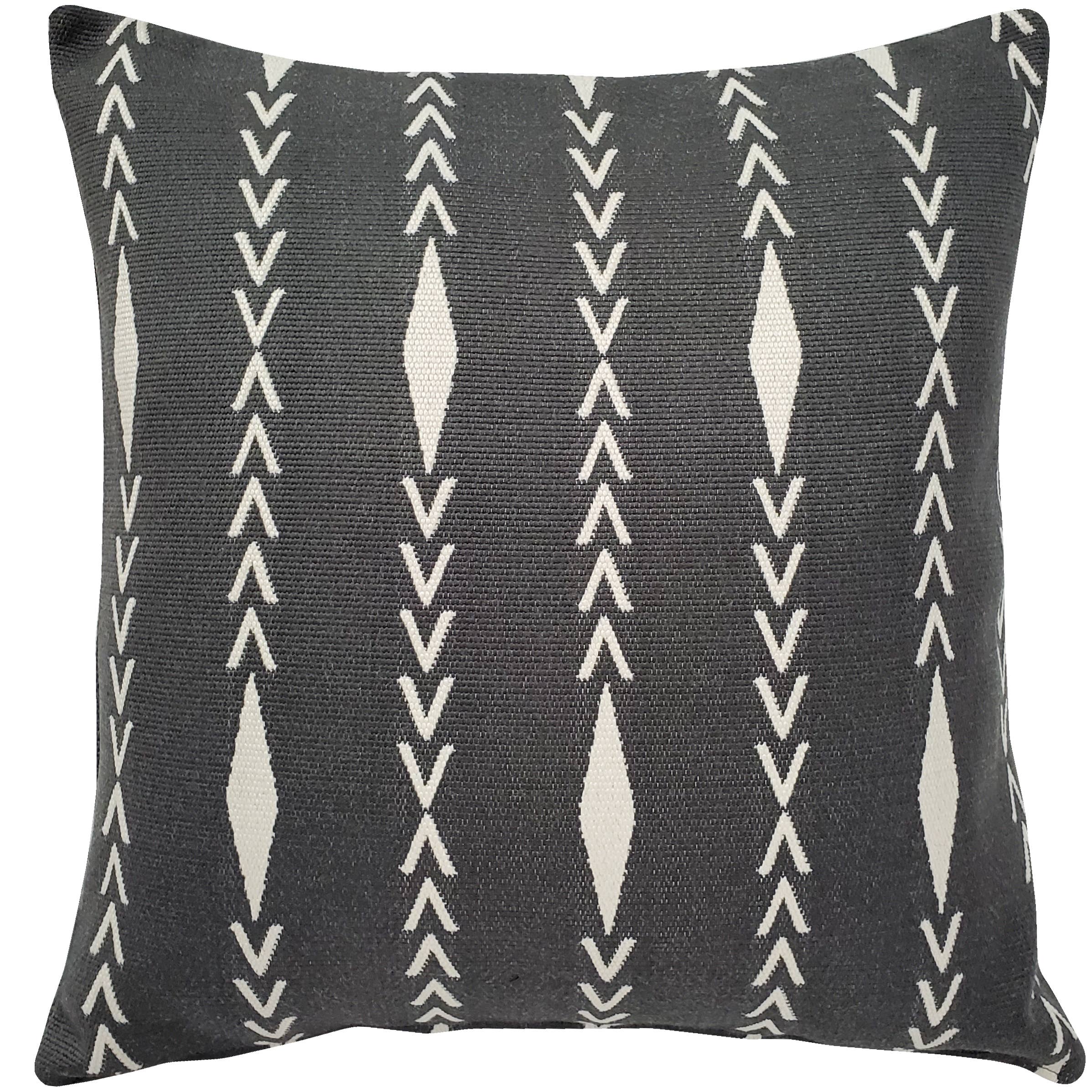 Details: *Flat-woven 100% cotton for softness and durability *Bold white tufting on solid black background *Geometric/diamond pattern enhances modern décor *Handmade in India *Zipper closure for easy insert removal *Machine washable for easy care *Ideal for couches, beds, or decorative benches *Classic color allows standalone or layered styling Add bold contrast and timeless style with this White/Black Geometric Decorative Throw Pillow. Perfect for a couch, bed, or bench, the flat-woven pillow features crisp white tufting and border against a solid black background. The classic color scheme allows it to stand alone or complement existing decor collections. Handcrafted in India from 100% cotton, it is soft, durable, and designed to last. The included zipper closure makes insert removal effortless, while machine washable fabric ensures easy care.