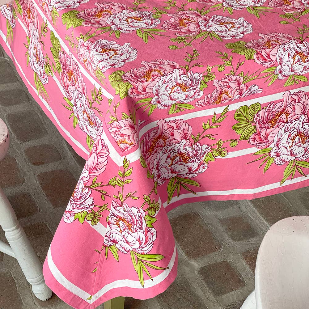 Hand screen printed tablecloth. * 100% Cotton. * Available in 3 sizes of tablecloths. * Machine washable. Low heat tumble dry.
