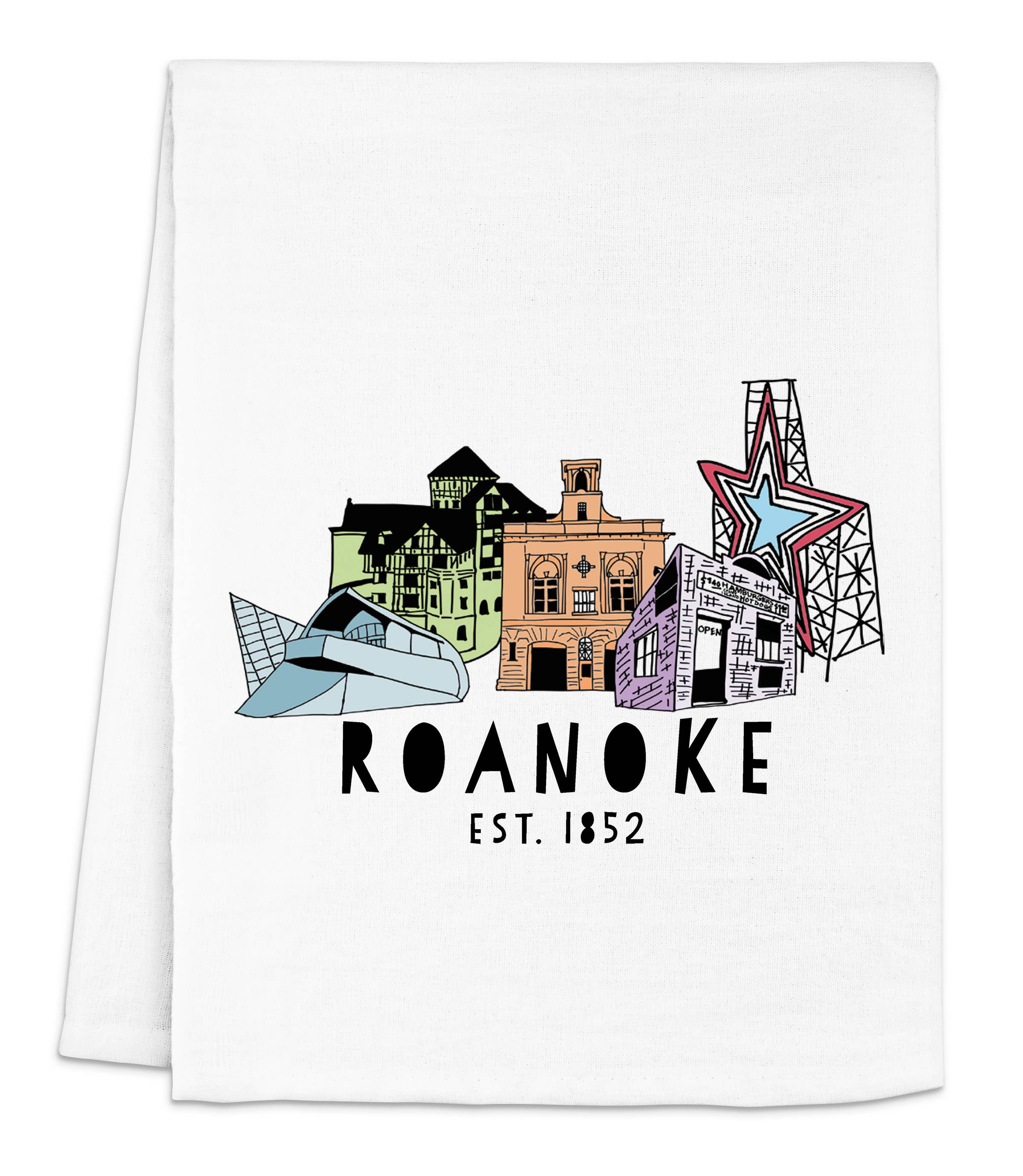 This flour sack tea towel (cotton/linen blend) features my colorful Richmond Classics Part I design, adding a beautiful splash of color to any kitchen. This towel can be used for decorative and practical purposes! It makes a fantastic, lightweight gift for anyone with a connection to Richmond. When completely unfolded, the towel is 30"x30" and when folded six ways, 10"x14".