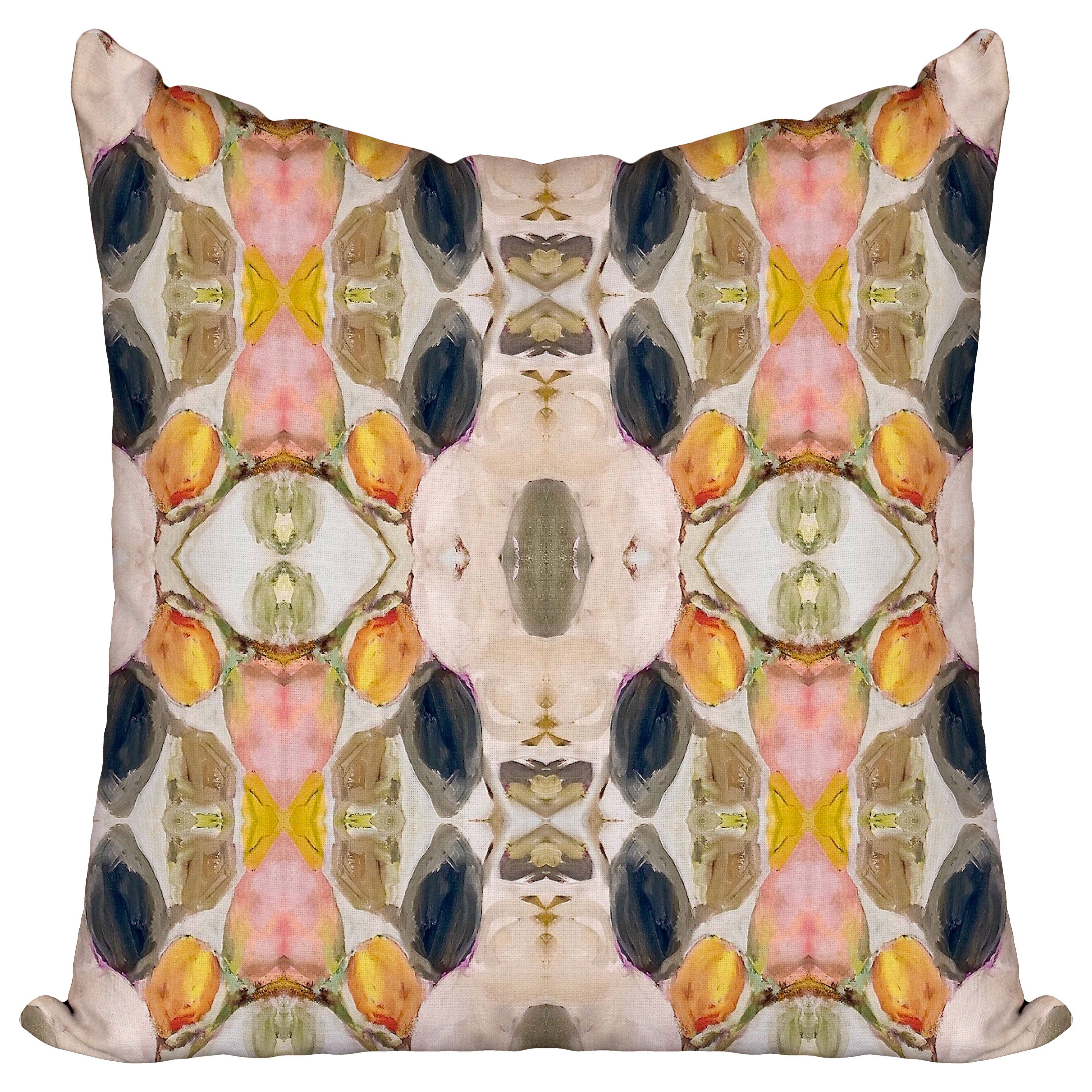 This gorgeous quilted cushion cover is as soft as clouds! Inspired by our travels in Cappadocia, Turkey – a hot spot for ballooning, where every day at dawn hundreds of hot air balloons float into the sky. Reversible, the other side features a bright blue print on cotton linen, inspired by painted symbols and rock-cut windows and doors on cave houses and churches in the region. From the Kapadokya Collection.