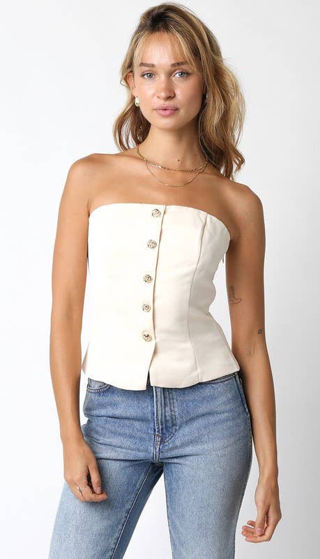 - Mini buckle detail stretchy woven crop top - Stretchy woven material - Sleeveless - Adjustable strap - Garter details - Hidden side zipper - Good stretch - Model size 5' 9" ( Wearing S size)