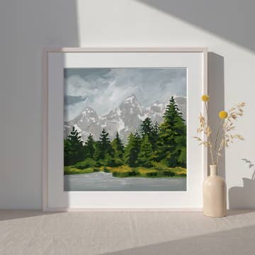 This mountain waterfall landscape art print is a small reproduction of an original block print by artist, Katie Dean. If you are looking for smaller artwork at an affordable price, this is a great option. Many retail customers who love block print art appreciate this price point as an alternative to the original piece. Fits conveniently in in a standard size frame. Framed piece available for retail shops looking for display options. See "tester" for this option. • Digitally Printed on Felt Weave Paper • Archival Matting Size : 8.5” x 11” • Fits a Standard Frame Size • Packaged with a heavy board in protective sleeve Our Values: Fine Art Based Design / Made in the US / Not Sold On Amazon / Women Owned Business
