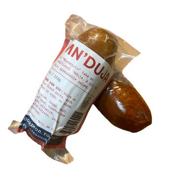 Spread thick across a toasted, crusty baguette, sautéd with white beans and kale, topping a roman style pizza, or folded in to fettuccini and clams, ‘Nduja’s rich flavor keeps us coming back for more. This unique Italian-style salami traces it roots back to the Calabria region in Southern Italy, where the pepper bearing the same name is grown. Because of its high fat to protein ratio this salami remains soft and spreadable even after the drying process is complete making it not only an excellent charcuterie option, but a fantastic cooking ingredient as well. Spicy salami spread - 12x4 oz pieces per case.