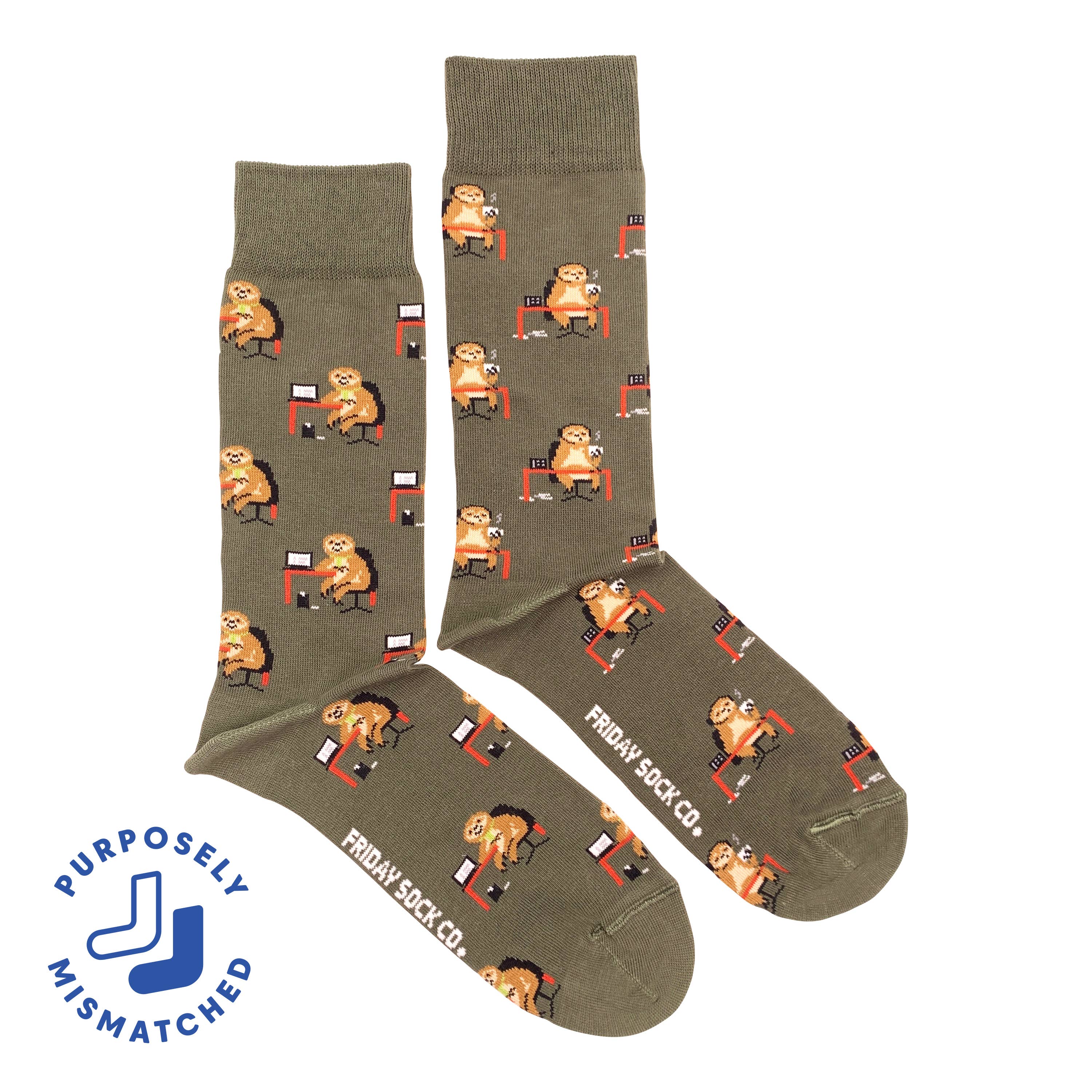 Women’s Working Sloth mismatched socks feature playful sloth designs and soft certified cotton construction. Designed in Canada and made in Italy, they offer novelty appeal and strong sell‑through for boutiques, gift shops, and specialty retailers. Designed in Canada, ethically made in Italy. 85% Egyptian Combed Cotton 12% Nylon 3% Spandex Expertly sewn Rosso Toe Link Yarn blend extending throughout the top cuff for extra durability and comfort Reinforced Heel & Toe Produced using eco-friendly certified Egyptian Combed Cotton* *The yarn used in our socks undergoes a comprehensive, third-party testing and certification system for textile products at all stages of production. Test criteria are updated annually and go far beyond existing legal regulations.