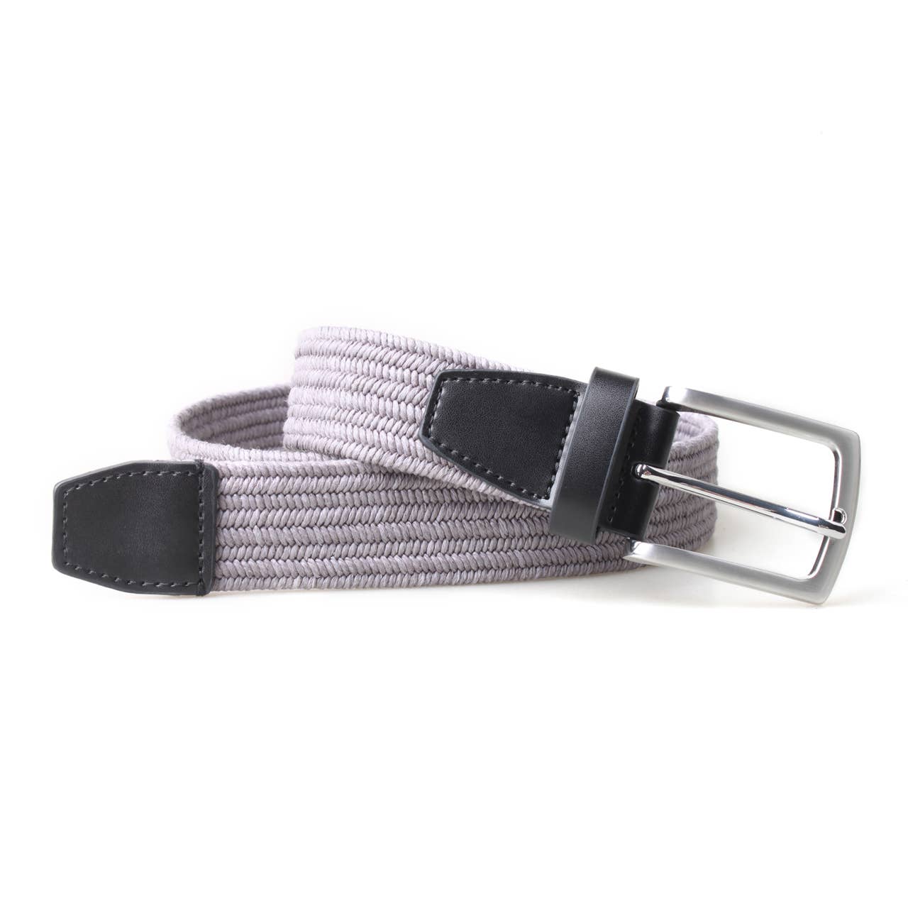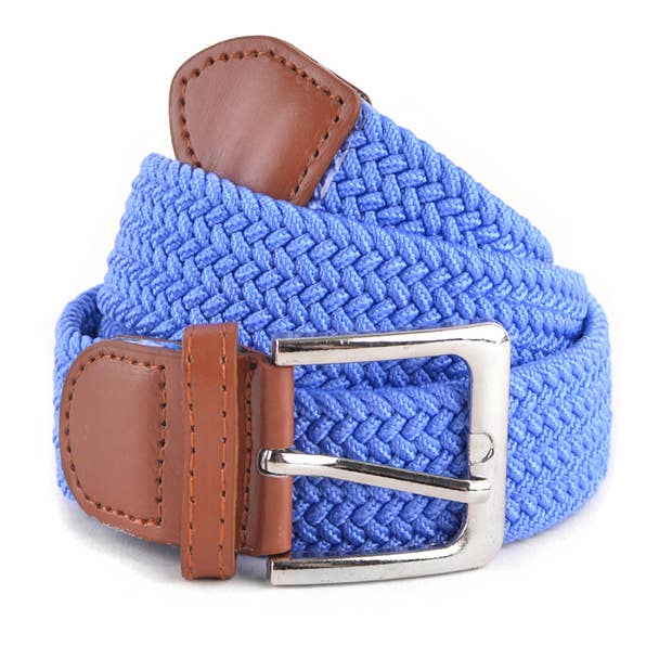 -This stretchy men's belt provides comfort and flexibility with its elastic material, making it the perfect accessory for those who want both style and ease of movement in their daily wear. A Great belt for golf ! - Versatile novelty twisted yarn braided stretch woven 3.5 CM belt with leather loop - 55% cotton 5% polyester 35% elastane - trims - 5% leather.