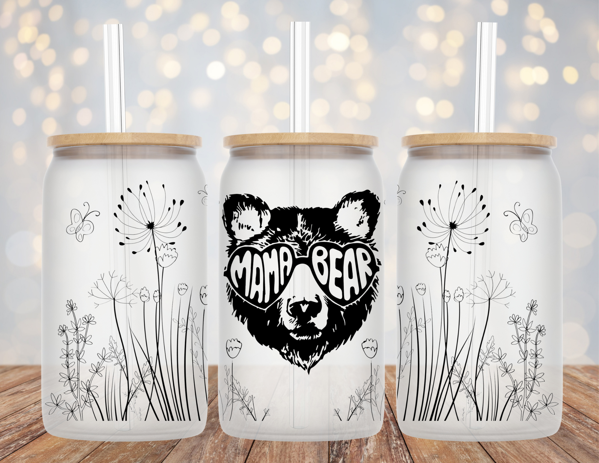 Mama Bear Glass Cup, Glass 16oz Coffee Cup, Mom Gift