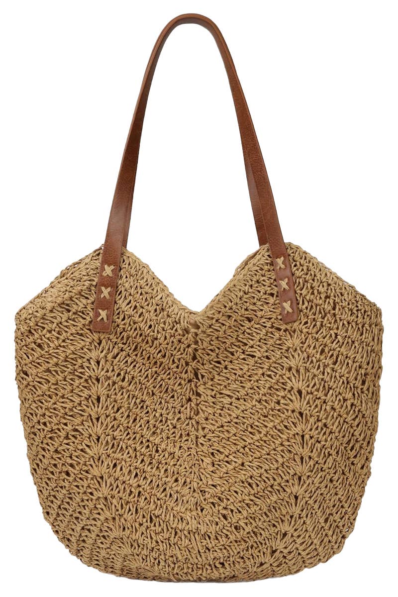 A sunny motif is hand crocheted to create our cheery Soleil tote. It's spacious size works well for travel or an everyday carryall. Pairs beautifully with our Soleil clutch! * 100% crocheted raffia * Cotton lining and inside pocket * Leather straps * Snap closure * 17"W x 7"D x 16"H; 9.5" strap drop - Approximate dimensions, each piece is handmade