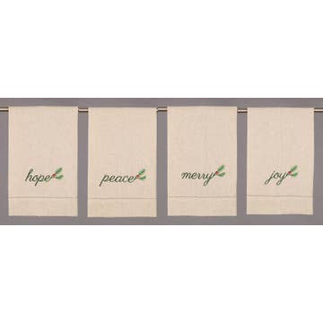 Tea towels embroidered with a variety of whimsical prints and patterns give the kitchen an exciting touch of decor. Made with super soft cotton and featuring unique designs, these tea towels add fun and function to your own kitchen or make a lovely gift. Details Embroidered accents Inside corner tab to hang Dimensions Approx. 28" L x 20" W Material Cotton Care Tips Machine wash delicate Tumble dry low