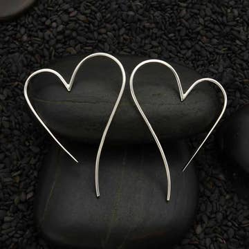Silver plated hoop earrings in a whimsical hand fashioned heart shape! 1 1/4 inches in diameter, Sweetheart is sure to bring smiles! (also available in a 1 7/8 inch diameter)