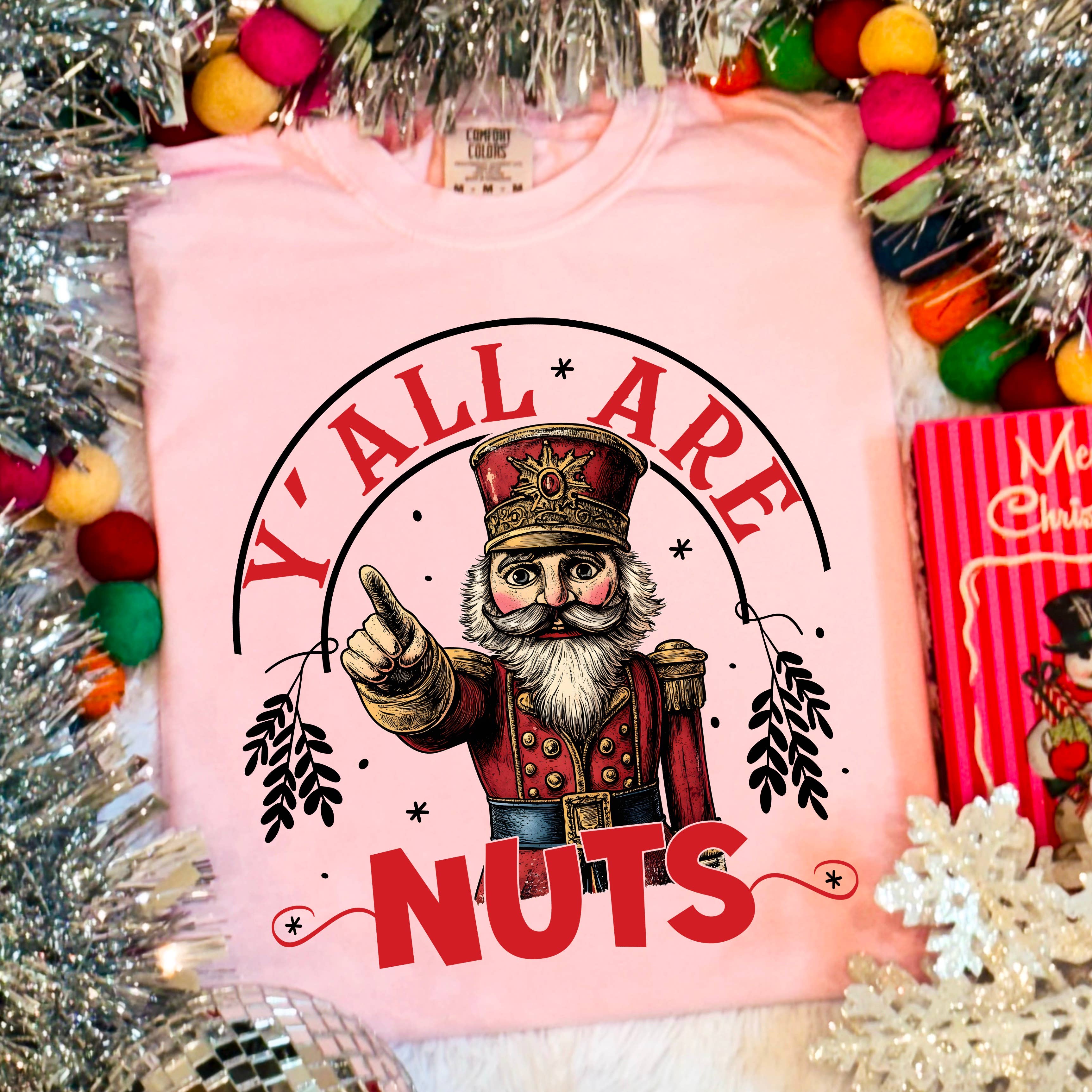Glitter Nutcracker Friends T-Shirt, Pink Christmas Sweater Unisex T-Shirt (Gildan 5000) - 100% cotton - Medium fabric (5.3 oz/yd² (180 g/m²)) - Size available: S, M, L, XL, 2XL, 3XL, 4XL, 5XL Unisex Sweatshirt (Gildan 18000) - 50% cotton, 50% polyester - Medium-heavy fabric (8.0 oz/yd² (271.25 g/m²)) - Size available: S, M, L, XL, 2XL, 3XL We use the direct to garment printing technique for a vibrant and long-lasting print. For more information, please feel free to contact us.