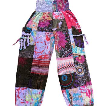 SKU: 66533 Made in India Aesthetic: Bohemian and Streetwear Care Instructions: Hand wash Color: Multi-Colored Fit: Unisex Occasion Theme: Everyday Occasion: Everyday and Loungewear Pant Length: Ankle Pant Style: Baggy and Balloon Pattern: Patchwork Rise Style: Regular Season: Spring/Summer Product Language: English Weight: 0.28 g (0.01 oz) Product Materials: Recycled and Upcycled Production: Ethically sourced