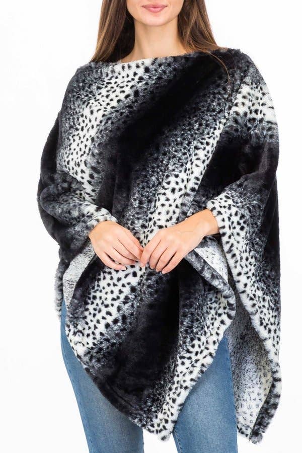 9069 Faux Fur Poncho Hearts Loowie