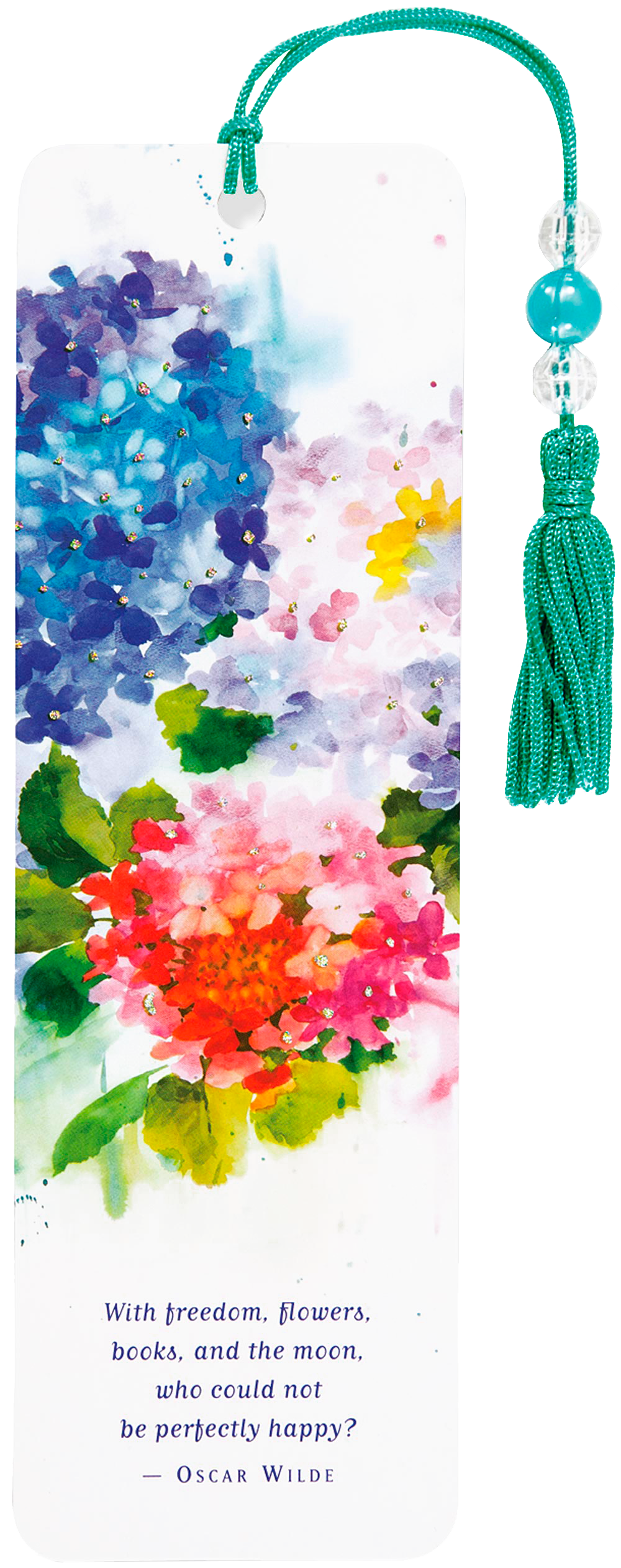 Feather your nest with books and make this elegant peacock your reading companion! The plumage of this handsome fellow gleams with gold foil detailing. Bookmark design includes a quotation from Emily Dickinson: ''Hope is the thing with feathers.'' Attached: A silky Prussian blue tassel and a round teal-colored bead with a speckled patina finish. Bookmark is printed on sturdy, smooth-finish coated card stock. Beaded bookmark is packaged in a protective clear plastic sleeve. Measures 2-1/2'' wide x 7-1/8'' high. Warning: Choking hazard, small parts. Not for children under 3 years.