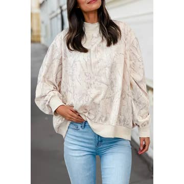 Wholesale Abstract Print Mock Neck Sweatshirt | S-XL