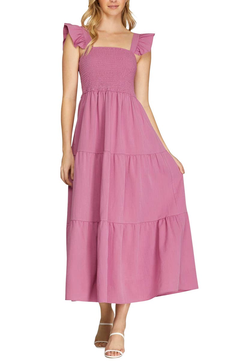 * ONLY SOLID COLOR CHANGES ** 95% RAYON 5% SPANDEX SLEEVELESS ROUND NECK SOLID COLOR BLOCK DRESS WITH SIDE POCKET AND RUFFLED DETAIL MODEL SIZE: HEIGHT 5'9", BUST 32", WAIST 23.5", HIPS 34" WEARING SIZE: SMALL *The garment color may differ slightly upon arrival due to being taken with professional lighting also depending on what device you maybe using to shop*