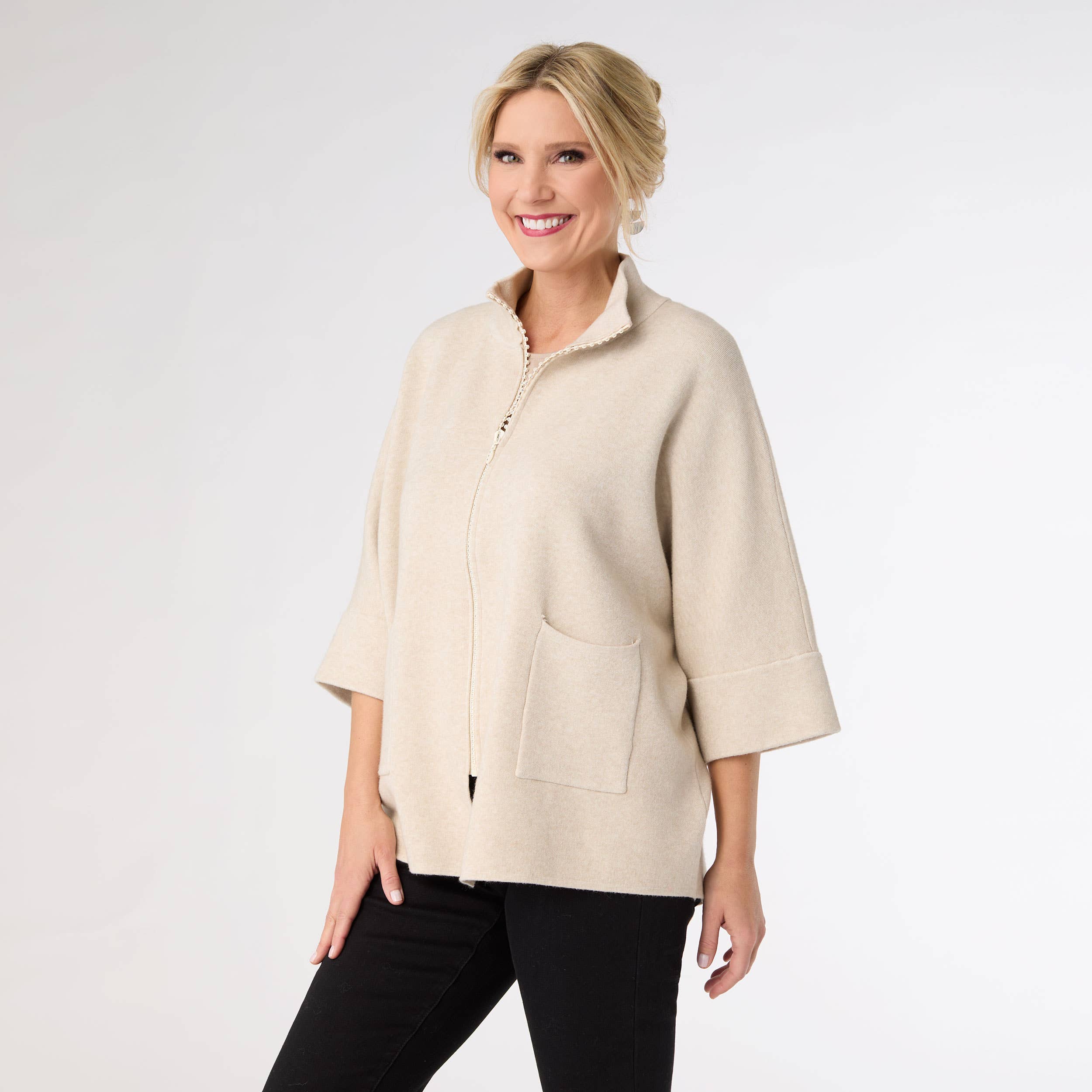 Our casual button-front jacket is the perfect light layer for multiple seasons