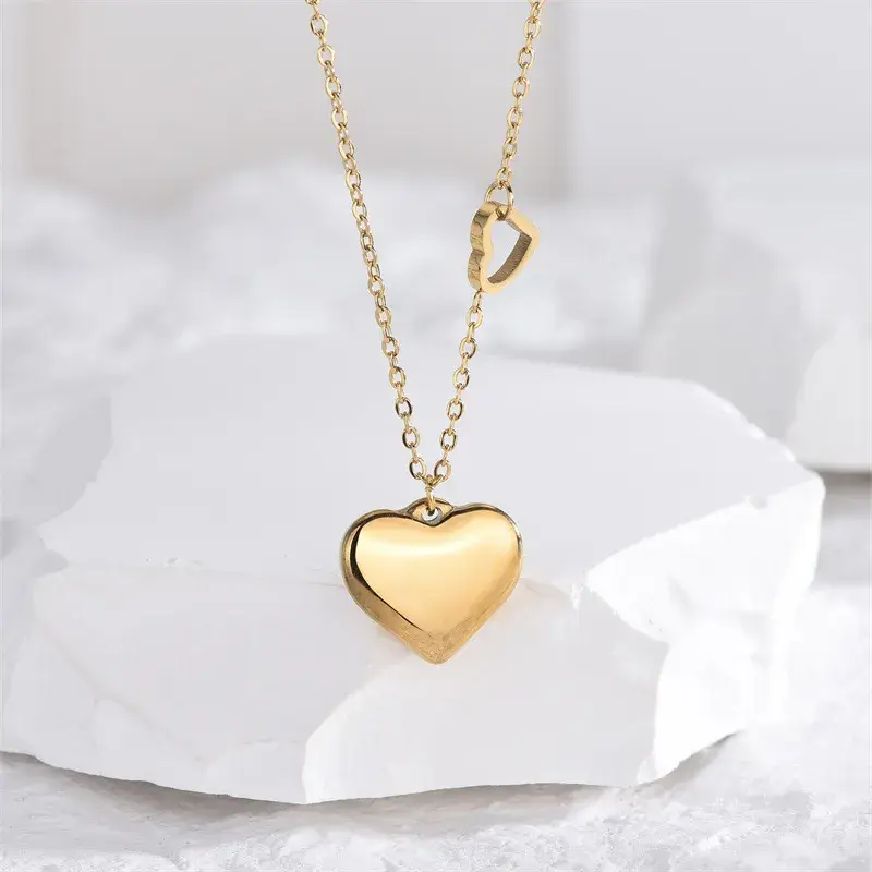 Simple Heart Pendant Necklace 18K Gold Plated 2 Sizes