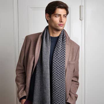 This reversible lambswool scarf features a beautifully bold woodgrain pattern, inspired by the texture of trees and the great outdoors. 100% supersoft lambswool, knitted and finished in our Knit Shop in Dundee. Details 191cm x 18cm 100% lambswool Dry clean only Learn more about caring for your lambswool here. Made in the UK