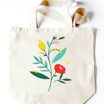 This unique tote bag is inspired by the vintage science textbook layouts, but with a modern twist. It is created with hand-drawn flowers and hand-lettered script. The tote features native plants from the state of Oklahoma, including the state's various floral emblems, like the state flower, the Oklahoma Rose, or the state tree, the Redbud. The tote is made of a sturdy canvas textured cotton. It is 14.5" wide and 15.5" deep with 9" long handles. The bottom has a 3.5" gusset. It's a large bag perfect for grocery shopping or a trip to the farmer's market, but not so big that it is bulky to carry. We recommend spot cleaning.