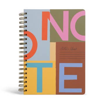 Letterpressed black stars twinkle on this bold spiral-bound notebook. Choose from a variety of page formats for the inside: * Blank: white perforated pages (55 pages) * Graph / lined: white perforated pages with grey 0.2" solid graph on left / grey 0.2" lines on right (55 pages) * Lined / graph: white perforated pages with grey 0.2" lines on left / grey 0.2" solid graph on right (55 pages) * Dotted grid: white perforated pages with grey 0.25" dotted grid (55 pages) Materials: doubled heavy paper for front and back covers; your choice for inside pages (see list above); wire-O spiral binding Size: page size is 6" x 9", overall notebook including spiral is 6.25" x 9" x 0.5" thick Printing method: letterpress