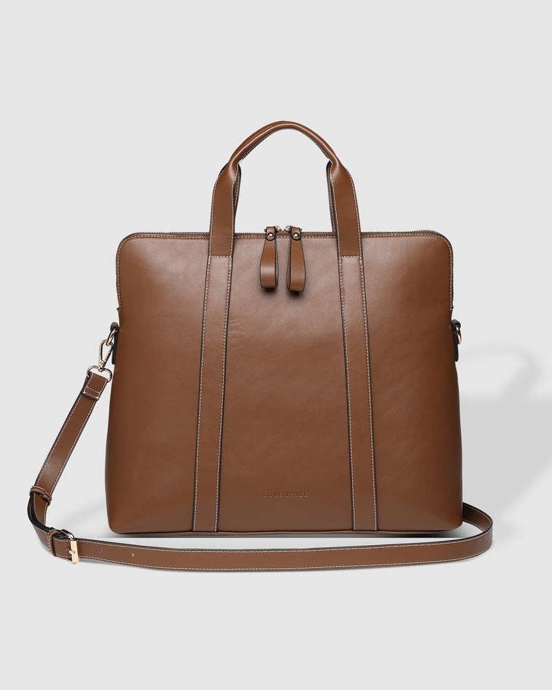Unusual elegance with structure! For laptops up to 14 This business bag for women is the ideal bag for all women who are looking for an unusual and elegant laptop bag with structure. The robust NIVODUR with crocodile embossing gives this laptop bag structure on the outside, while SOCHA's full business equipment helps you structure your working day. DIMENSIONS: Width at the bottom 39 cm Width at the top 36 cm Height: 29.0 cm Floor dimensions: 39 cm x 12 cm Weight: only 1000 g Amenities: 1 large zipped compartment 2 x compartment for smartphone 1 x small compartment with zip 1 x compartment for business cards 1 x compartment for accessories 3 x pen holders. 1 x large removable middle compartment with all-around padding (34 cm x 23 cm x 4 cm) 2 x secret compartment under the handles 1 x removable and adjustable carrying strap 1 x large outer pocket on the back 1 x trolley strap 5 x metal stand Material: fine synthetics (Nivodur) Black viscose lining
