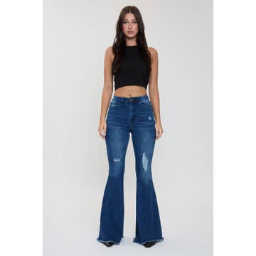 SIZE + FIT - FRONT RISE: 10 1/2 - INSEAM: 33 - MODEL IS WEARING SIZE MED - MODEL IS 5'9 - HIGH-RISE, WIDE LEG JEANS - BUTTON CLOSURE AND ZIP FLY - 5-POCKET STYLE - STRETCH FABRIC - FINISHED HEM 97% COTTON, 3% SPANDEX BRAND: LOVER BRAND FASHION
