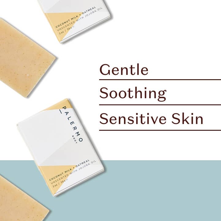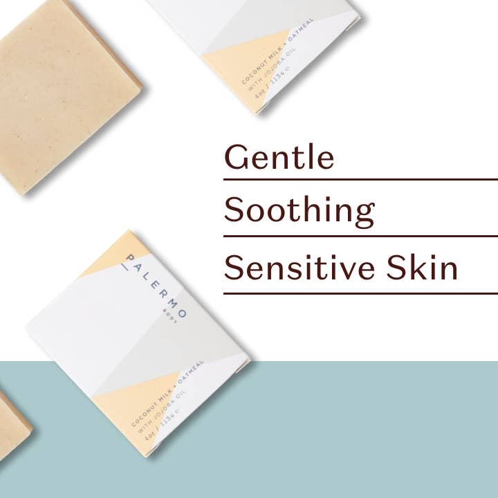 A purely gentle cleanse for the most delicate skin. Our Coconut Milk + Oatmeal Soap Bar is the gentlest bar we make—crafted for very sensitive, dry, or irritated skin. This unscented facial and body bar features a calming blend of organic coconut milk, finely ground oatmeal, and jojoba oil to soothe, moisturize, and restore balance without disrupting the skin’s natural barrier. Oatmeal has long been cherished for its ability to calm conditions like eczema and psoriasis, while coconut milk and jojoba oil deliver deep hydration and healing. The creamy lather rinses clean, leaving skin soft, nourished, and comforted—no fragrance, no fuss. 🌿 Key Ingredients: Coconut milk: deeply moisturizing and soothing Oatmeal: calms irritation and gently exfoliates Jojoba oil: hydrates and supports skin barrier function Shea butter: locks in moisture and protects 💧 Benefits: Unscented and ultra-gentle Cold-processed and naturally rich in glycerin Vegan, cruelty-free, and handcrafted in small batches Ideal for sensitive, dry, or winter-stressed skin 🎁 Perfect For: Christmas & holiday gifting Winter skin routines & cozy self-care bundles Spa sets, baby showers, and clean beauty collections Packaged in a branded outer box, this 4 oz bar is perfect for gifting, daily use, or pairing with other Palermo favorites in a seasonal skincare ritual.
