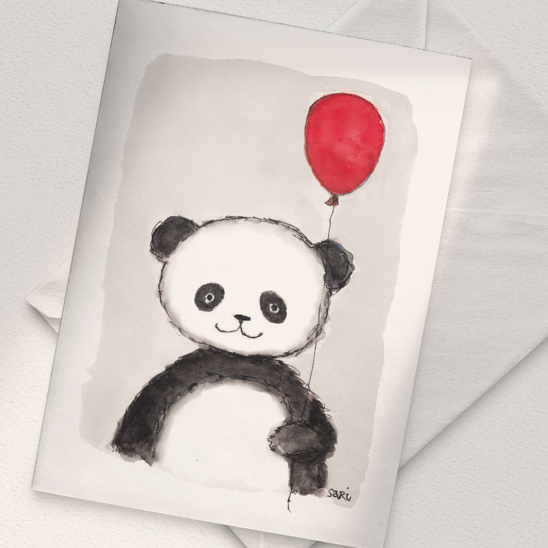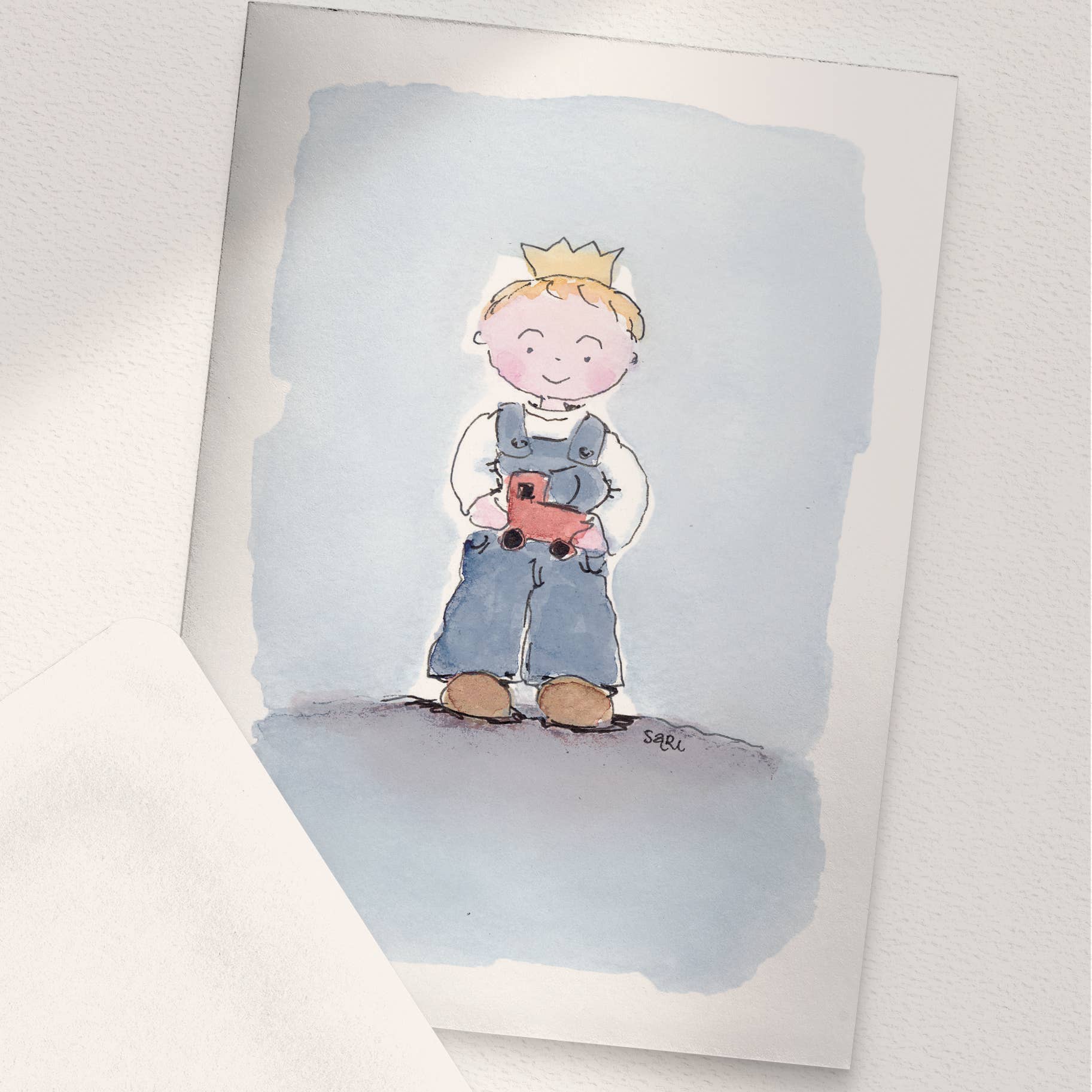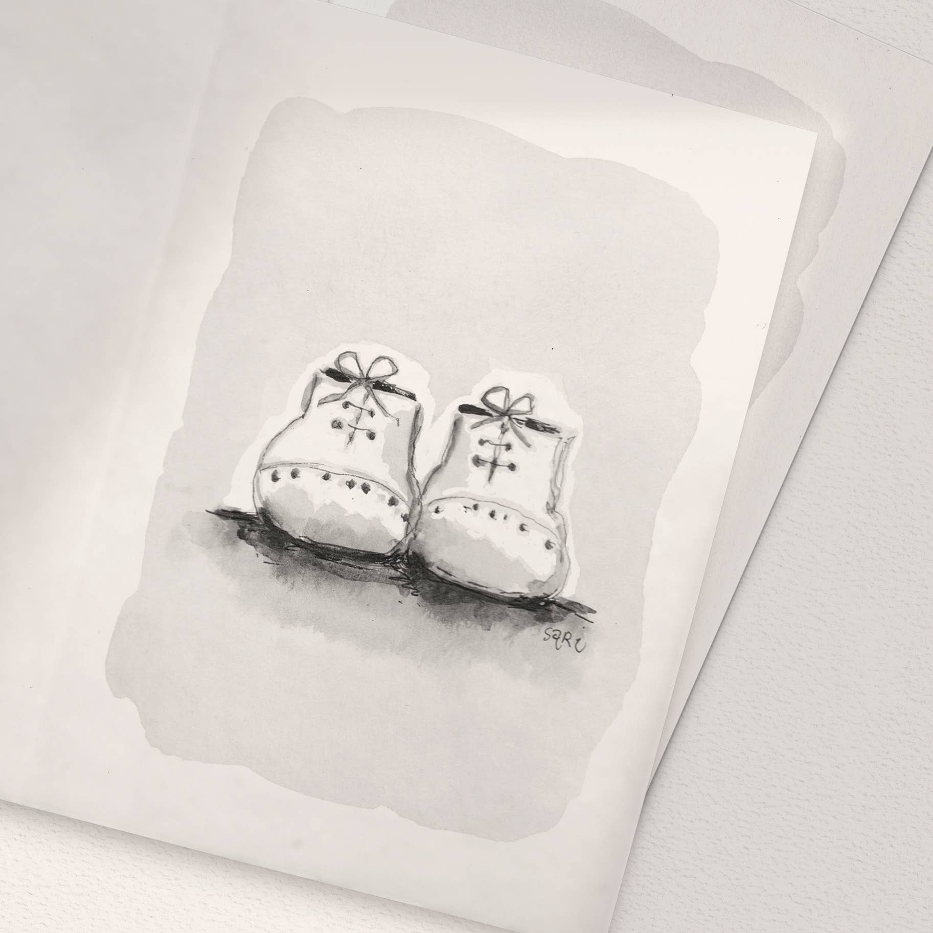 Watercolour painting printed on off-white cardboard.