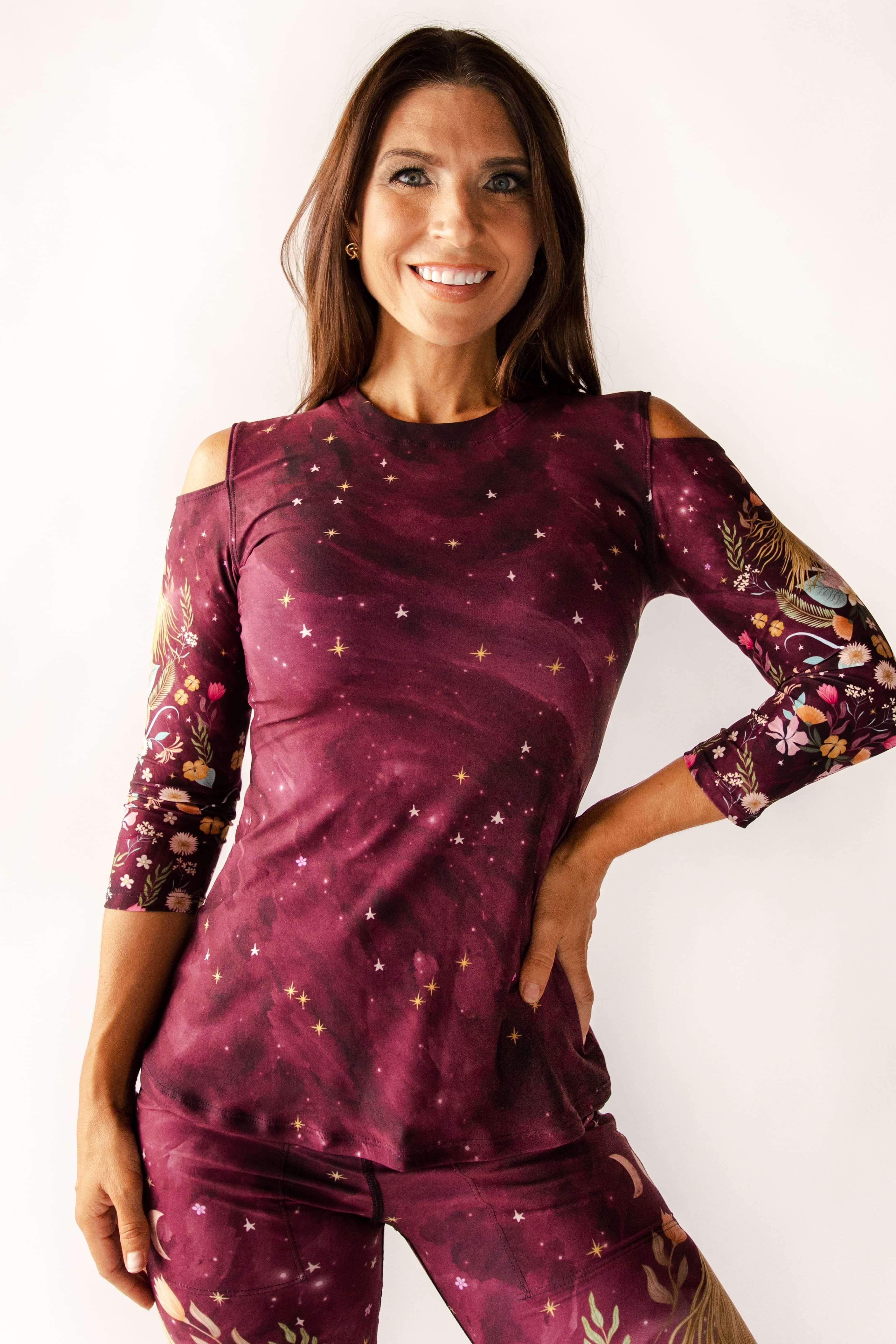 The most versatile top in activewear. Our Knot top allows for a Knot tie in front or back, the 2-way reversible tie brings versatility so you can decide how you want to wear it for the perfect outfit. Cropped silhouette sitting at the belly-button to meet the top of your high-waisted pants Luxury USA made brushed fabric derived from post-consumer plastic including water bottles. 79% Recycled PET/21% LYCRA® XTRALIFE Polyester fabrics printed using an eco-friendly, non-toxic dyeing process that produces fade-free, bleed-free vibrant color. Handcrafted at our Arizona workshop with recycled fabric made in Southern, California Model Stats: Waist 27", Hips 40", Bust 32" Height 5'11", Wearing Size S