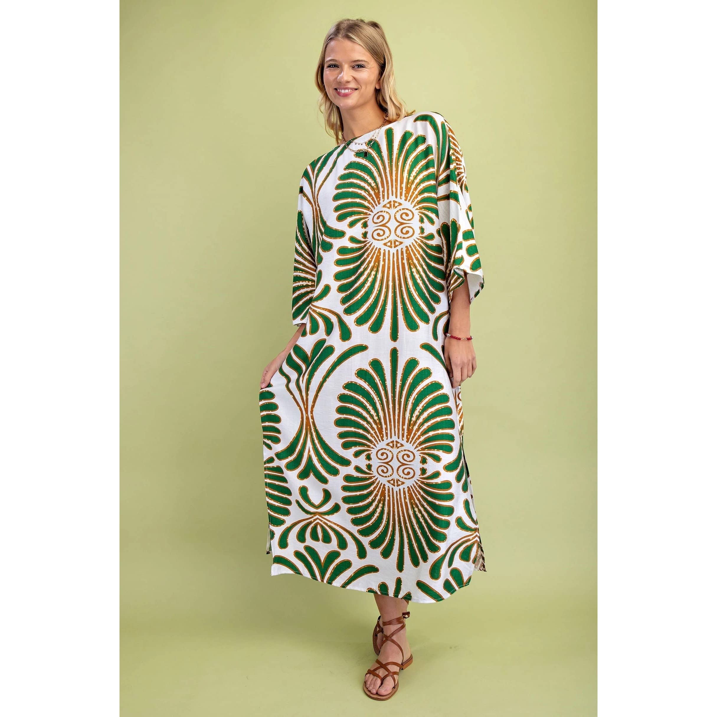 Abstract Print V Neck High Low Midi Dress w_Pocket