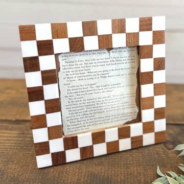 Handcrafted from various hardwoods, the Cambré Wooden Checkered Photo Display is a beautiful alternative way to display your favorite photos or mementos. The display includes a keyhole hanging device and can be easily installed on any wall, or simply stand on its own on a tabletop or dresser. Quickly change out photos and enjoy this fun and functional piece in your home. DETAILS: • Size: 9" x 5" x .5" • Materials: Mixed hardwoods finished with mineral oil and a small clip. • Color: Beautiful organic wood hues. Colors may vary due to natural variations in wood. • Use: Display your mementos with this beautiful photo display. Can be used to display photos, post cards, notes, or any other mementos that deserve a prominent view in your space. • Designed & Crafted in Austin, Tx (USA) CATEGORIES: • Home Decor, Picture Frame, Home Accents