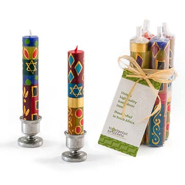 Made in United States Color: Multi-Colored Fragrance Notes: Honey Ingredients: Beeswax, natural dye, cotton wick. Occasion Theme: Hanukkah Occasion: Hannukah Style: Eclectic Weight: 453.59 g (1 lb) Dimensions: 25.4 x 15.2 x 10.2 cm (10 x 6 x 4 in) Packaging: Recyclable and Recycled Production: Fair trade