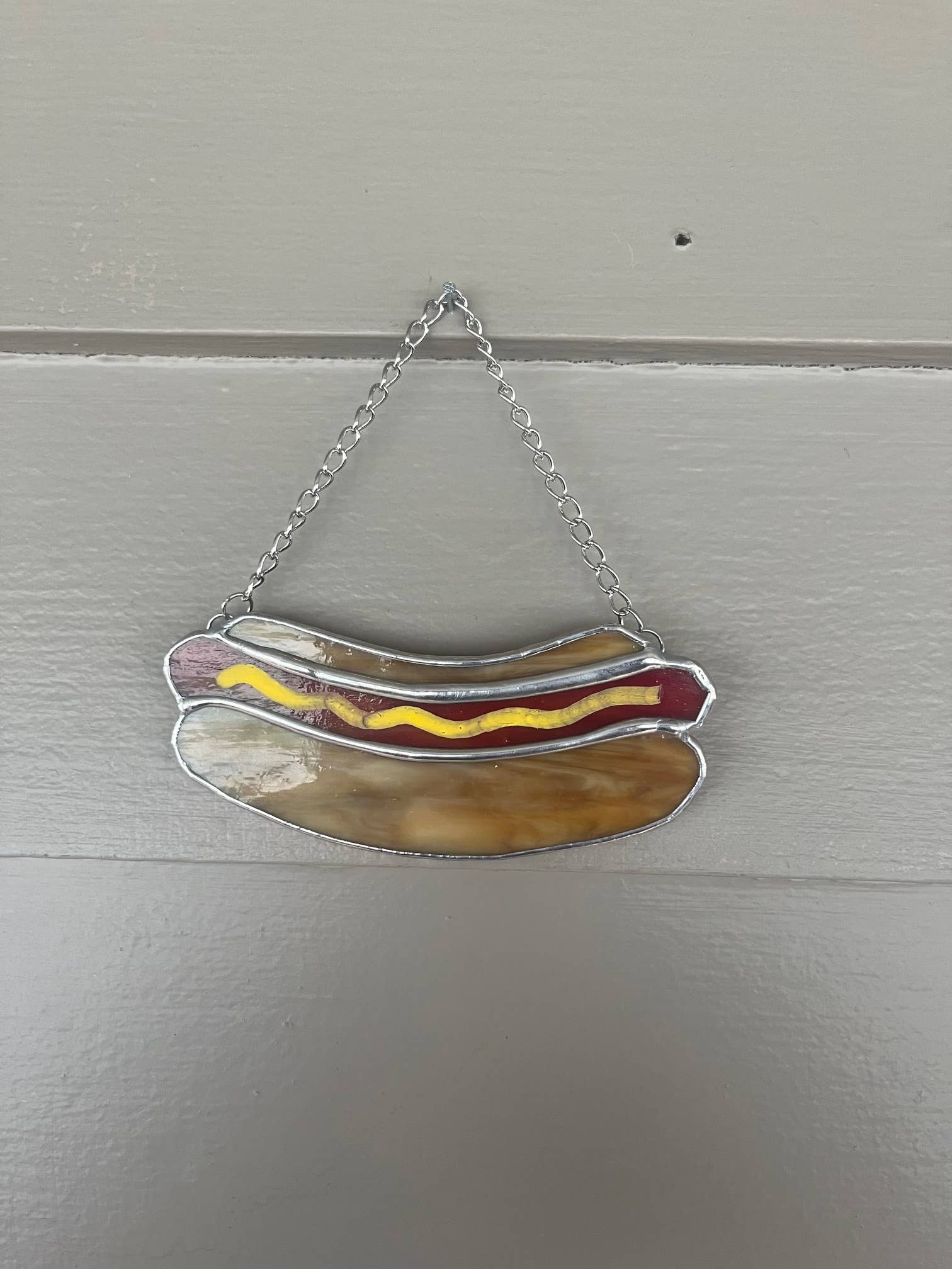 Yoni suncatcher using lead free stained glass in colorful combinations. Measuring 5 inches x 3 inches not including the chain. Faceted glass bead attached on the top. Color options include: juicy peach, kissed cocoa, sticky honey, wet n wild, and electric eye (mirror).