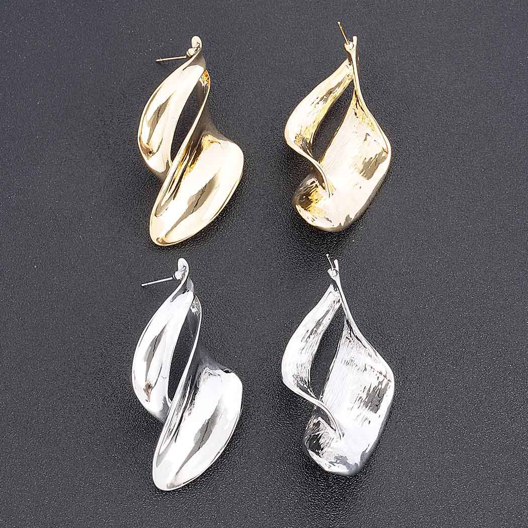 FR5342 TRI-Tone Layered Tri-Trapezoid Hammered Clip Earrings