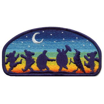 Grateful Dead Dancing Bears Embroidered Iron-On Patch - 6.25" x 2" Add some classic jam band flair to your gear with this embroidered iron-on patch featuring four colorful Dancing Bears in motion, a beloved symbol of the Grateful Dead. Measuring 6.25" wide by 2" tall, this patch is cut to the shape of the design and makes a perfect accent for jackets, bags, vests, or any fabric surface. Crafted with vibrant thread and high-quality stitching, and easy to apply using a household iron or heat press for a lasting finish. Officially licensed Grateful Dead merchandise