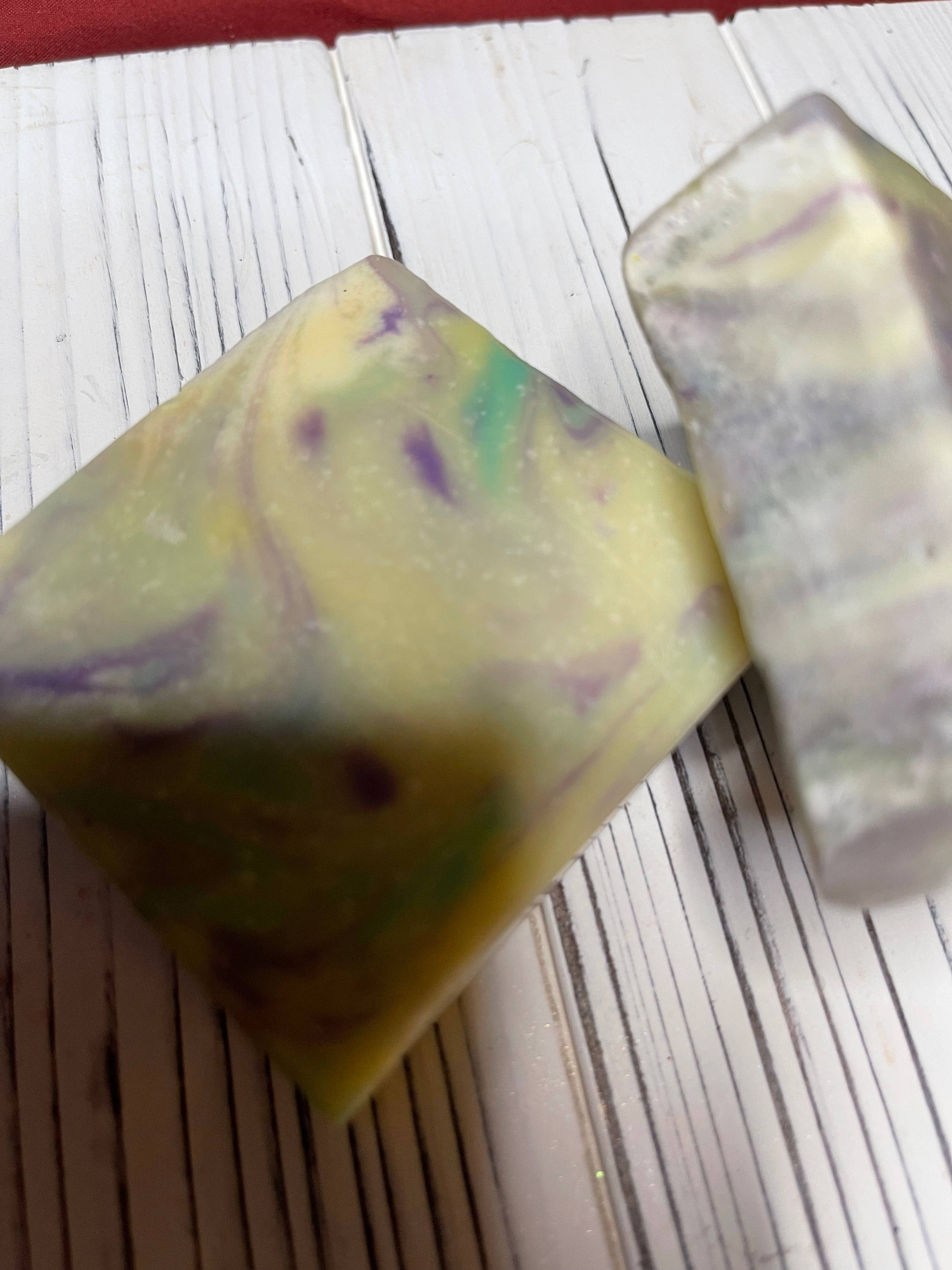 Looking for the perfect gift for a witchy woman or man who loves natural and earthy scents? Look no further than this patchouli soap! Hippie Witch patchouli soap is sure to please anyone who loves the heady, musky scent of patchouli. The scent is balanced with lavender and lemongrass, making for a truly unique and hippie-friendly blend. If you're someone who loves to layer your bath and body products, be sure to check out the Hippie Witch lotion. This lotion features the same great blend of patchouli, lavender, and lemongrass, so you can indulge in the scent all day long. With its unique blend of fragrance and essential oils, Hippie Witch is sure to be a hit with anyone who loves a little bit of magic in their daily routine. 4 oz bar. All of our full price bar soaps are 5 for $40! Hippie Witch Patchouli Soap Ingredients: RSPO Certified Palm Oil, Water, Olive Oil, Rice Bran Oil, Coconut Oil, Sodium Hydroxide (Lye), Shea Butter, Castor Oil, Fragrance Oil, Essential Oils (lavender, Indonesian dark patchouli & lemongrass), Mica