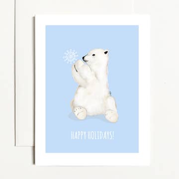 Bernie Street Studios - Wholesale Season's Greetings Card - Happy Holidays coy bear in beanie holiday greeting card