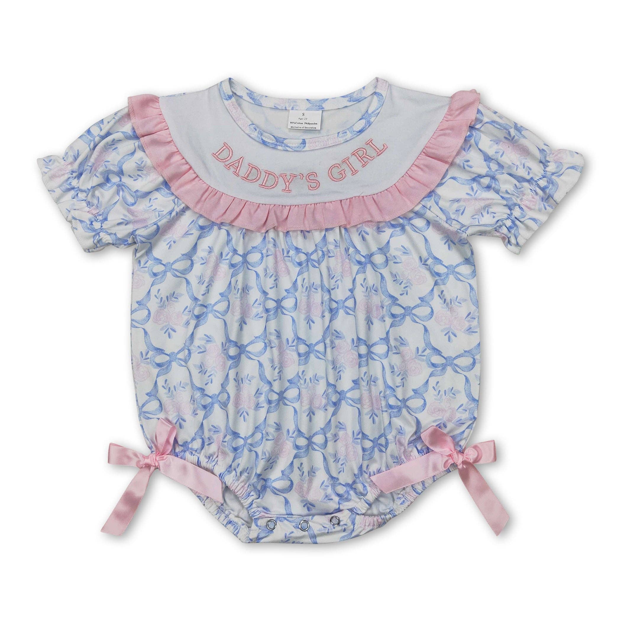 Pink bow short sleeves baby girls romper
