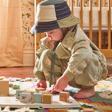 Ice-Dyed Toddler Bucket Hat "Soft, sun-safe, and seriously cute - our toddler bucket hats are the perfect accessory for sunny days, ice-dyed by hand in Davis, California for a totally unique look." Each hat features a playful swirl of color within your chosen colorway: Blue Lagoon – Celadon, Jade Blue, Teal Blue & Cobalt Desert Waves – Peach, Teal Blue, Chamois, Taupe & Burnt Orange Dusty Hues – Soft Pink, Wisteria, Dusty Pink & Ice Blue Golden Hour – Coral, Dusty Pink, Marigold, Sherbet Orange & Magenta Ultraviolet – Wisteria, Dusty Blue, Ice Blue & Royal Purple ✨ Please note: Due to the nature of ice dyeing, each piece will vary slightly in tone and pattern - that’s part of what makes them so special! Made with love in small batches. If you need more than what’s currently listed, feel free to reach out - we’re happy to accommodate when we can.