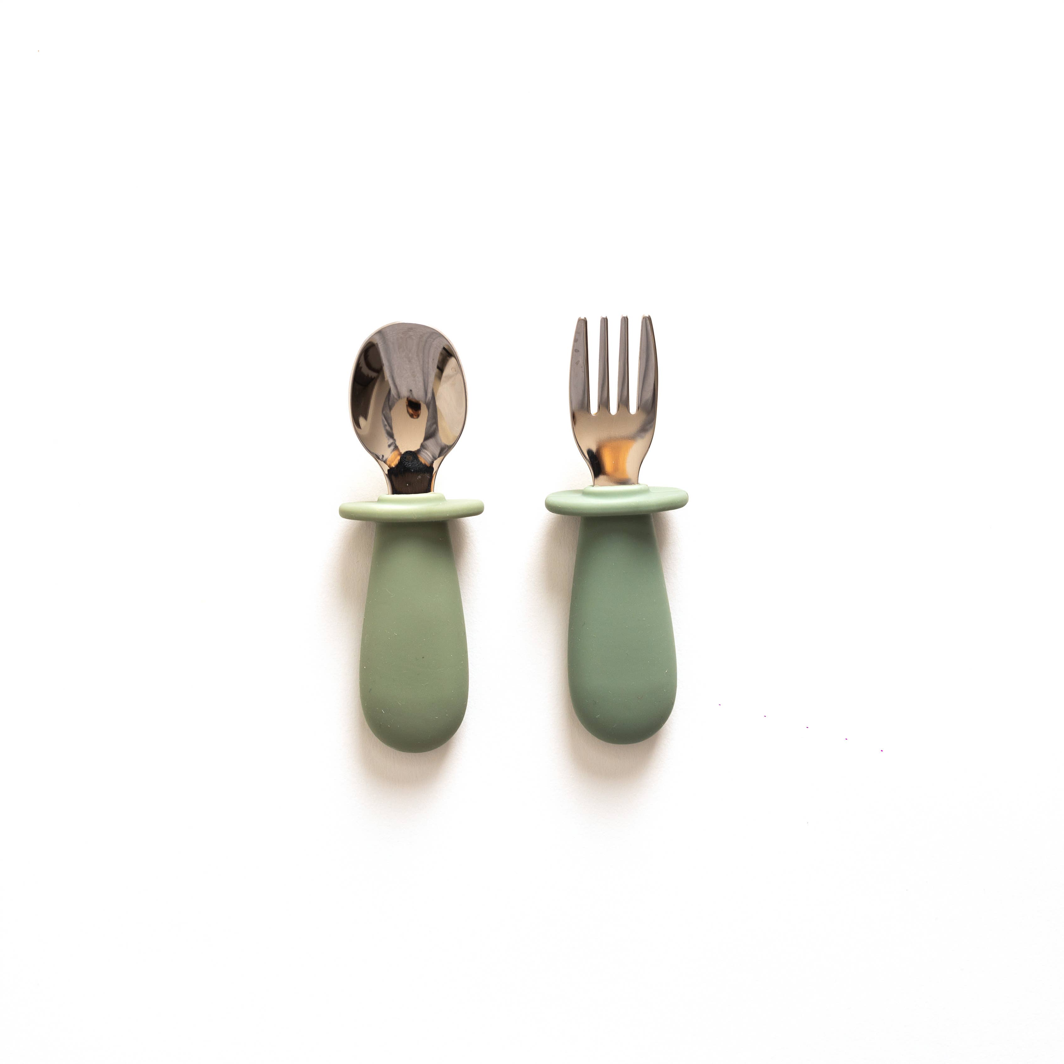 Our silicone & Stainless Steel Toddler Cutlery Sets are perfect for toddlers! This set uses stainless steel toppers attached to short silicone handles made for easy grasping by little hands! Product Details & Care: 100% Food grade silicone Free from BPA, PVC, Phthalates and toxic metals Recommended for age 4 Months and Up Dishwasher Safe Spoon Size: 3.8" Adult Supervision is recommended Please note for hygienic reasons, this item is final sale