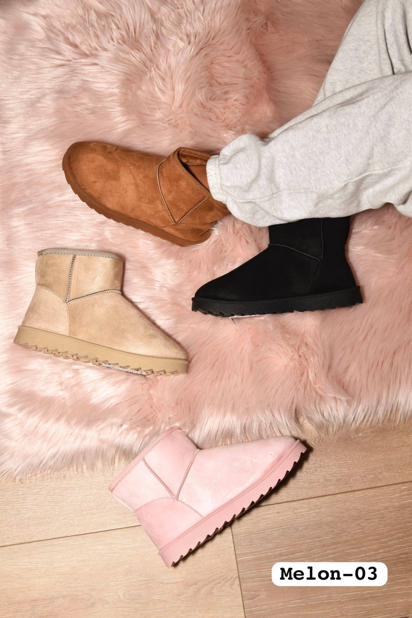 UGG BOOT INSPIRED FIT PLATFORM LUG SOLE BACK PULL TAB WOOL INNER LINING EVA OUTSOLE FUAX SUEDE UPPER HEEL HEIGHTS: 2" If you have a specific preference, kindly reach out to us and let us know. A12:5.5(1)-6(1)-6.5(1)-7(2)-7.5(2)-8(2)-8.5(1)-9(1)-10(1) B12:6(1)-6.5(1)-7(1)-7.5(1)-8(2)-8.5(2)-9(2)-10(2) Please be aware that this style is produced by one of our vendor partners, which may result in variations in sizing and quality. Furthermore, please note that we will ship either the A12 or B12 size pack based on our current stock availability. If you have a specific preference, kindly reach out to us and let us know.In the event this information is overlooked, please understand that we may not be held liable for any resulting discrepancies. Your attention to this matter is greatly appreciated.