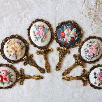 ★ Hand-embroidered Round Folding Mirror - Materials: Stainless steel, linen - Mirror size: 2.5" (6cm) - Handle length: 3" (7cm)