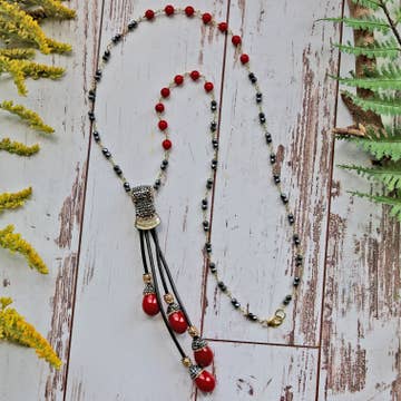 Wholesale Pirate Leather Necklace - Black & Square Druzy, Boho Western