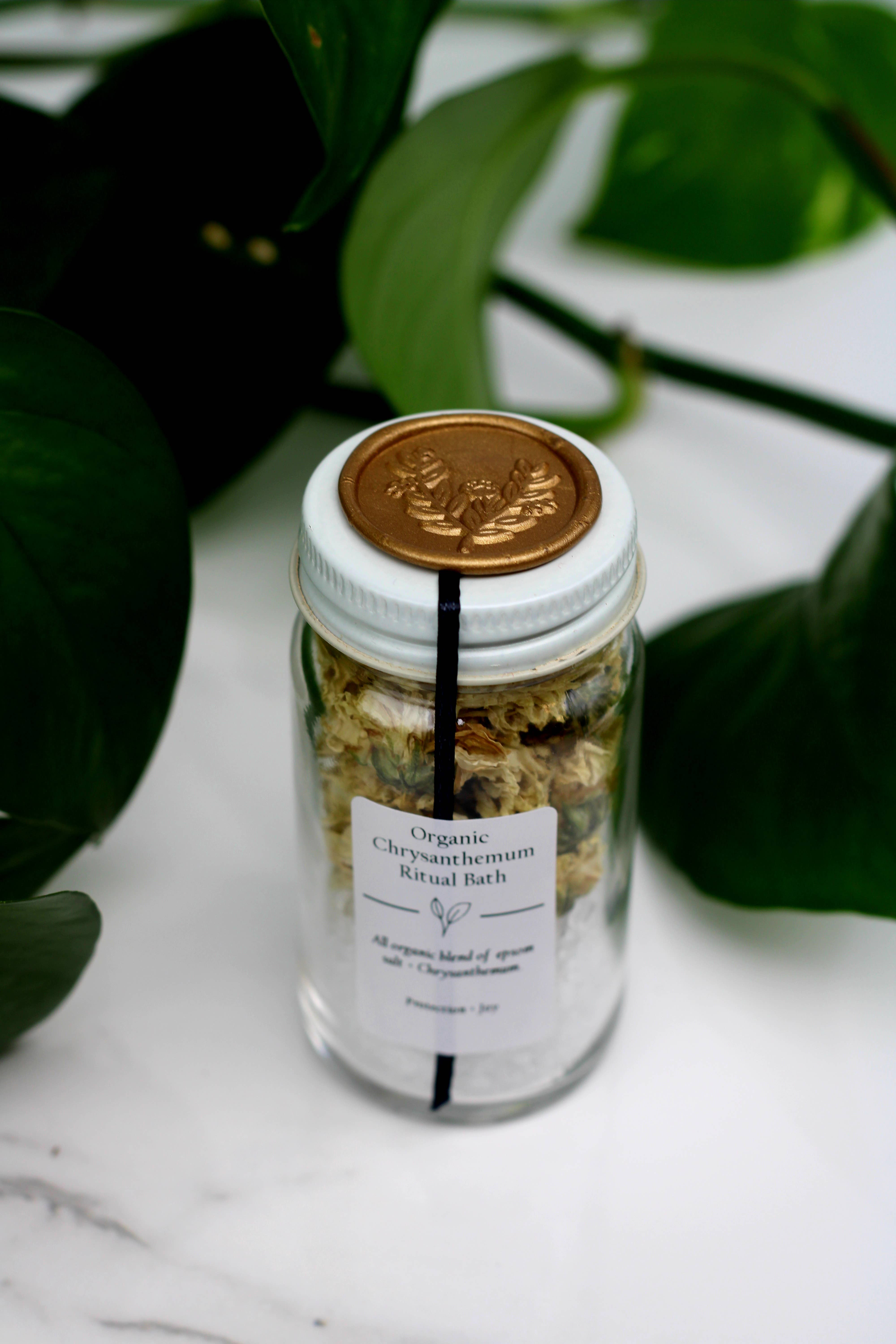 Dream bath vibes with our ritual bath soaks. Organic calendula and epsom salt help relax the body while drawing wealth and prosperity. Comes in a heavy 2oz glass container.