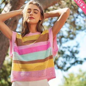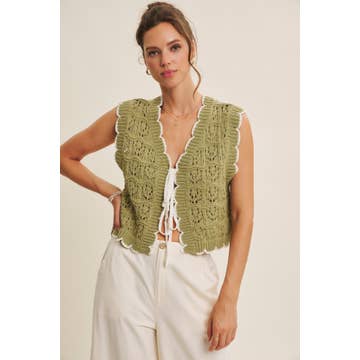 Eyelet Crochet Round Neck Sweater Vest