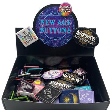 Using positive affirmations just might be the easiest way to reprogram old stories so that we can manifest positive changes in our lives. Putting pins of them where we will see them regularly is a perfect tool to keep them fresh in our minds. This collection of three pinback buttons includes one of each of my three original pin designs in white on black: “Words are Magic” “Choose Gratitude” and “Manifest that Shit”. Buttons measure 1” in diameter.
